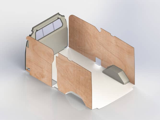 - WP-LD724L-PPF-PSR: 6mm Plywood Full Height Wall Panelling – To Suit SAIC LDV Electric Deliver 7 LWB Low Roof (01/2024+) – Passenger Side Rear