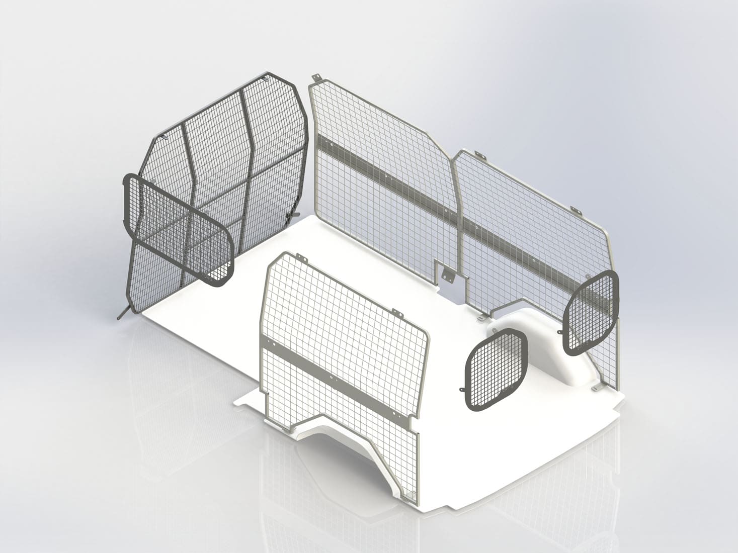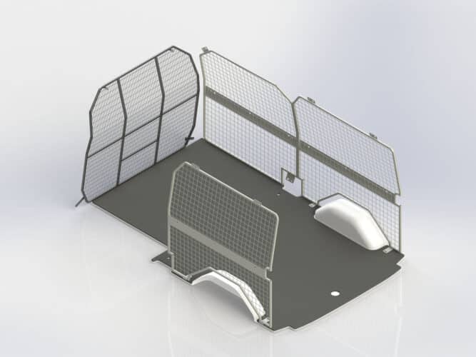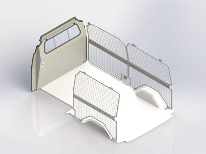 - WP-LD724L-MESH-DSF: Full-Height Mesh Wall Panel To Suit LDV Electric Deliver 7 LWB Low Roof (01/2024+) – Driver Side Front