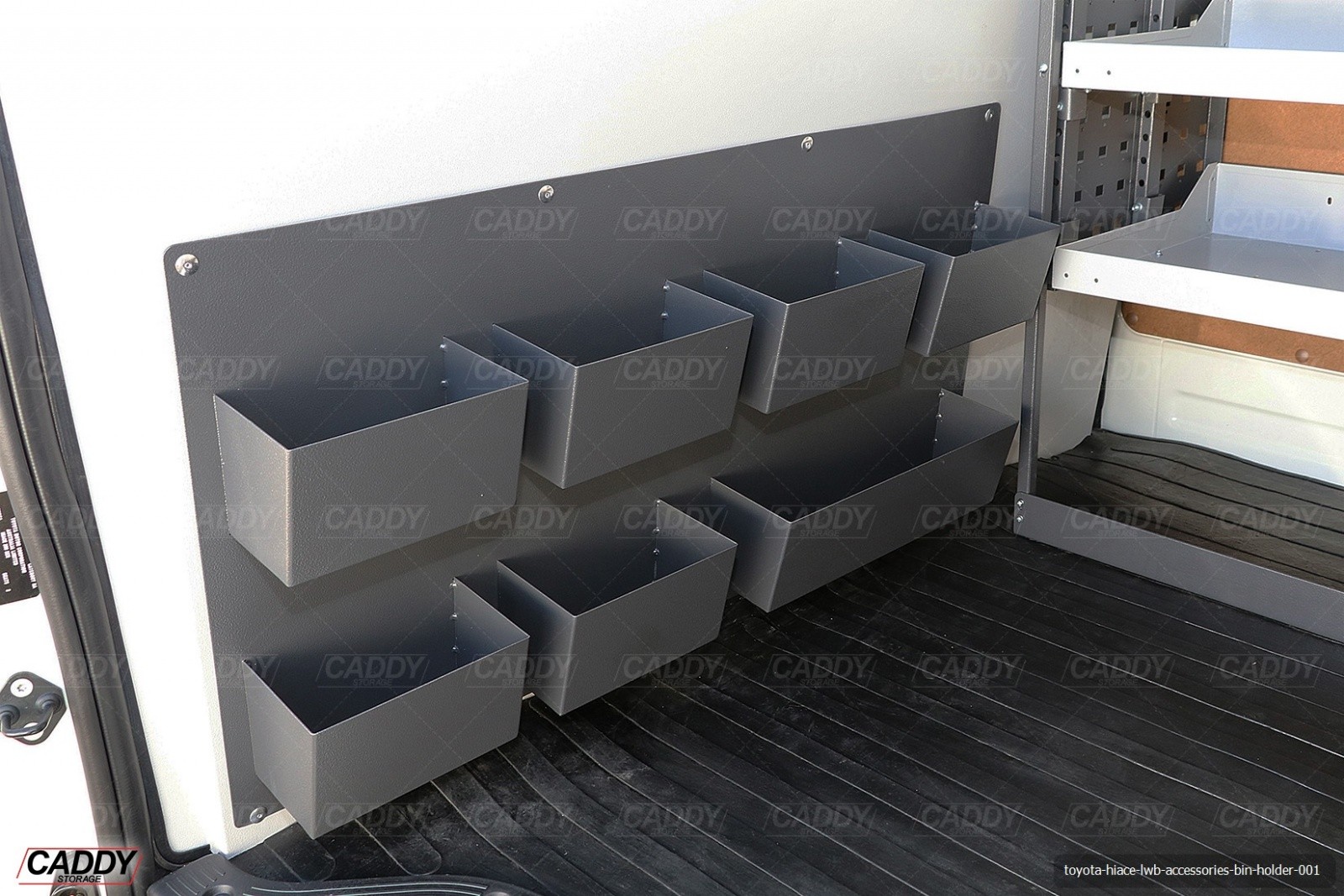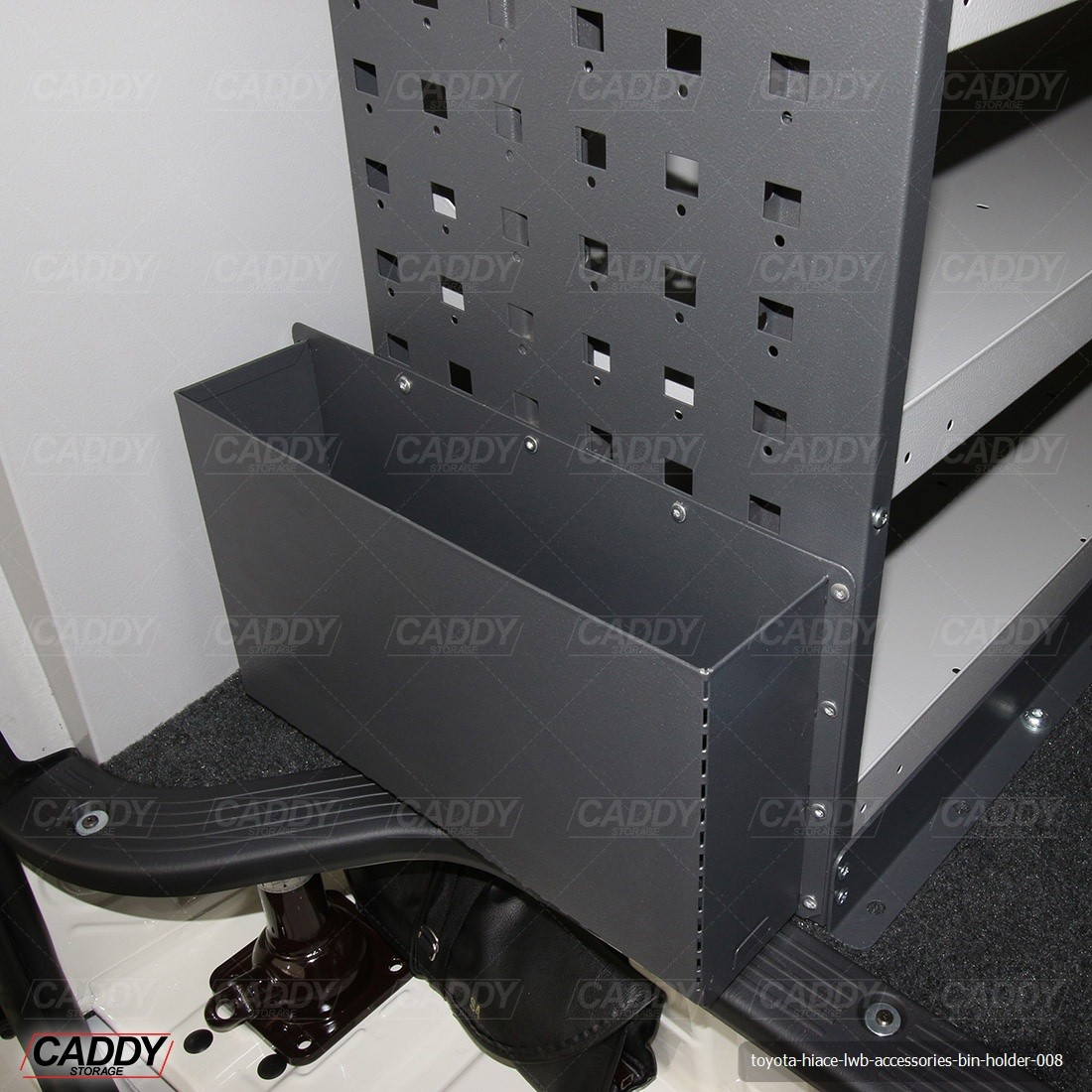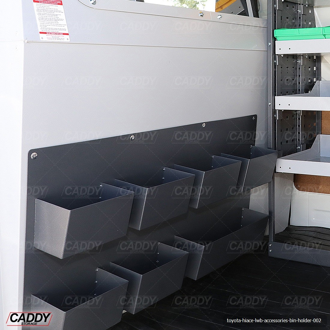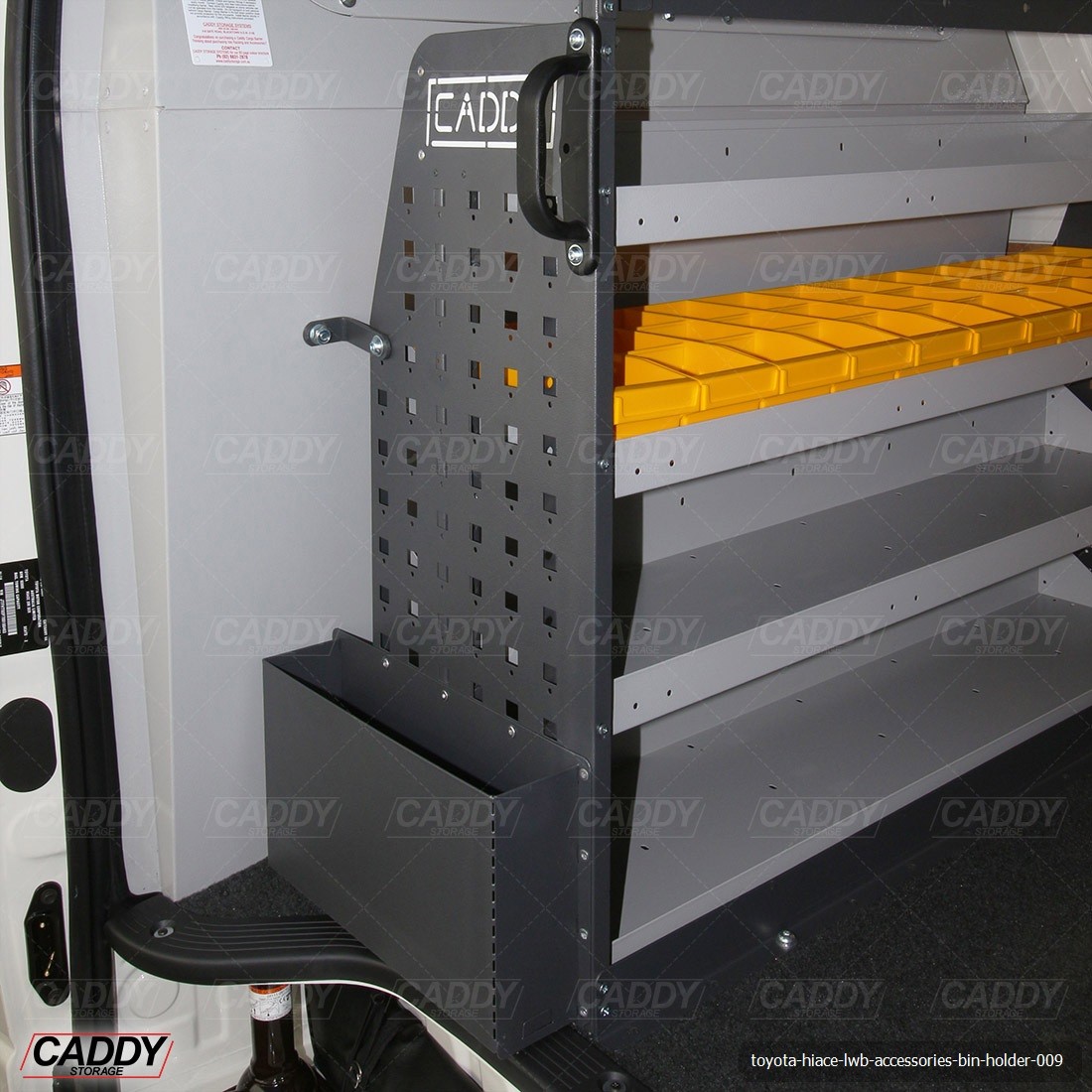 Caddy Storage can provide a custom built Bin Holder that suits your specific needs. Please note that design and research will be required and the vehicle will need to stay onsite for a minimum of 7-10 days. Can only be manufactured at Head Office.
