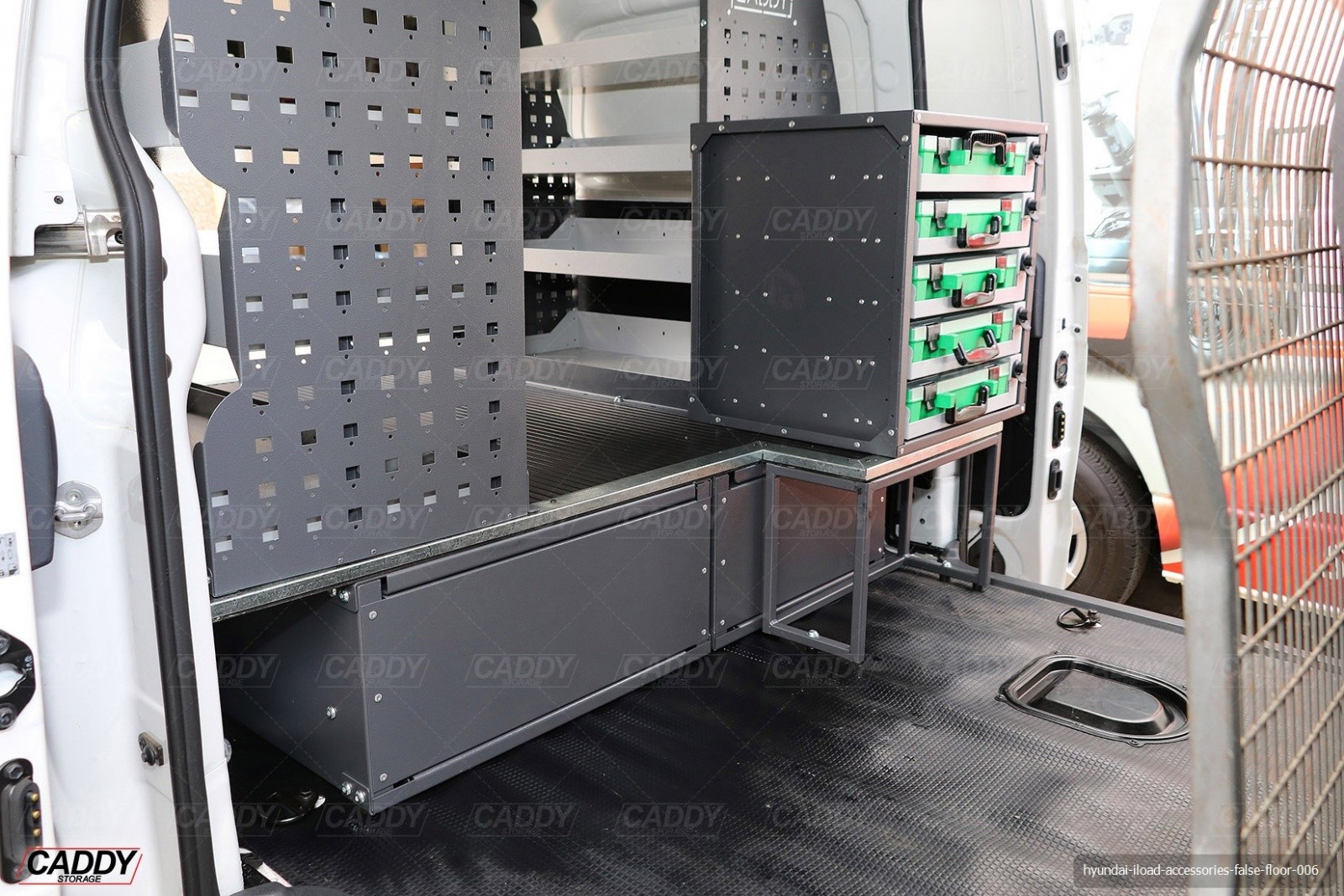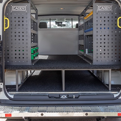 Having a false floor in your Van or Ute is an excellent way to manage your storage. This can be done by having a steel frame bolted to the vehicle which has a 17mm Timber floor attached. (Height customisable) (Option to have rubber or carpet applied) *Also available to have a false floor on standard Caddy Drawers.