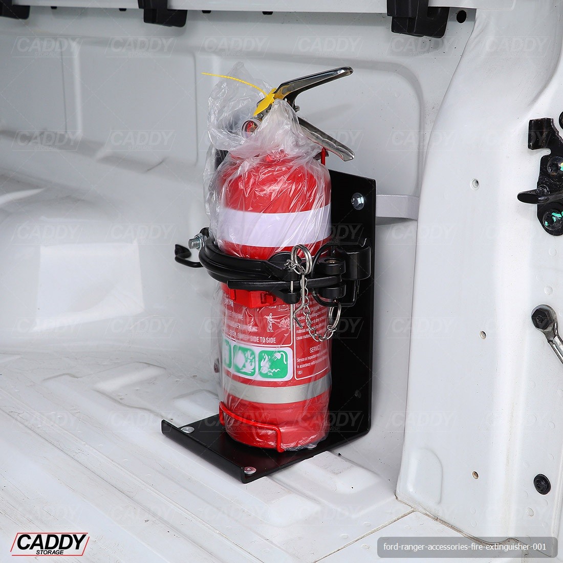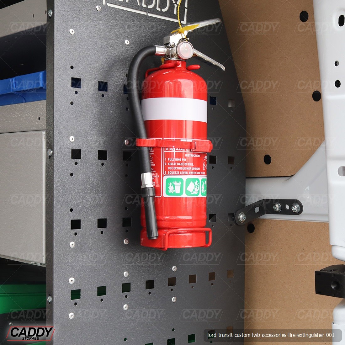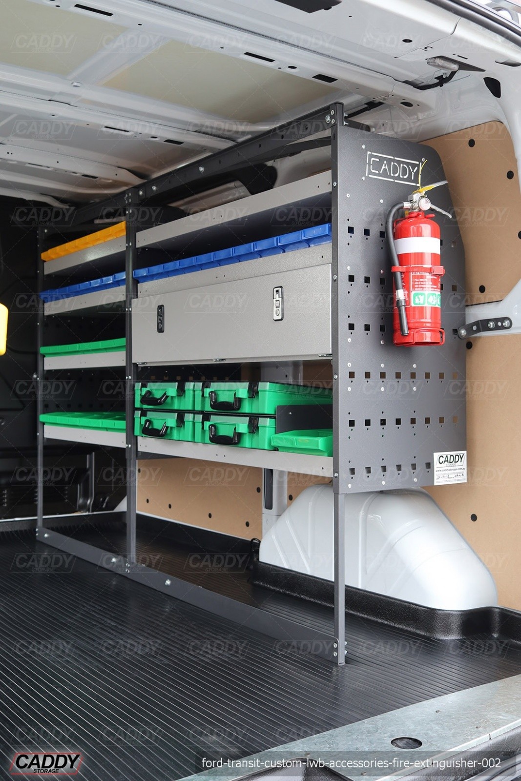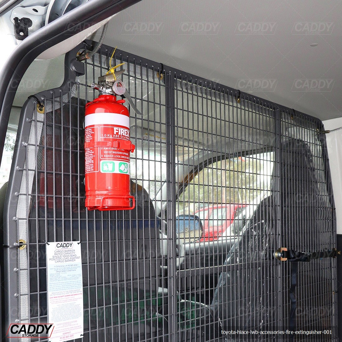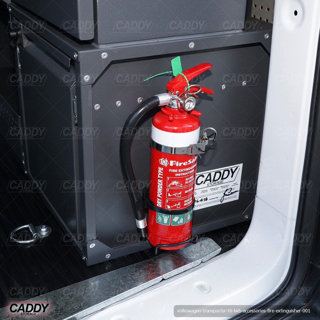 Fire Extinguisher. Compliant with AS1851-2012 Australian Standards. We supply 1kg, 1.5kg, 2kg, 4.5kg, 6kg and 9kg variants. We also manufacture holidng brackets so that the fire extinguisher can be safely placed on our shelving units, cargo barriers, drawer systems and in various locations in the cabin area.