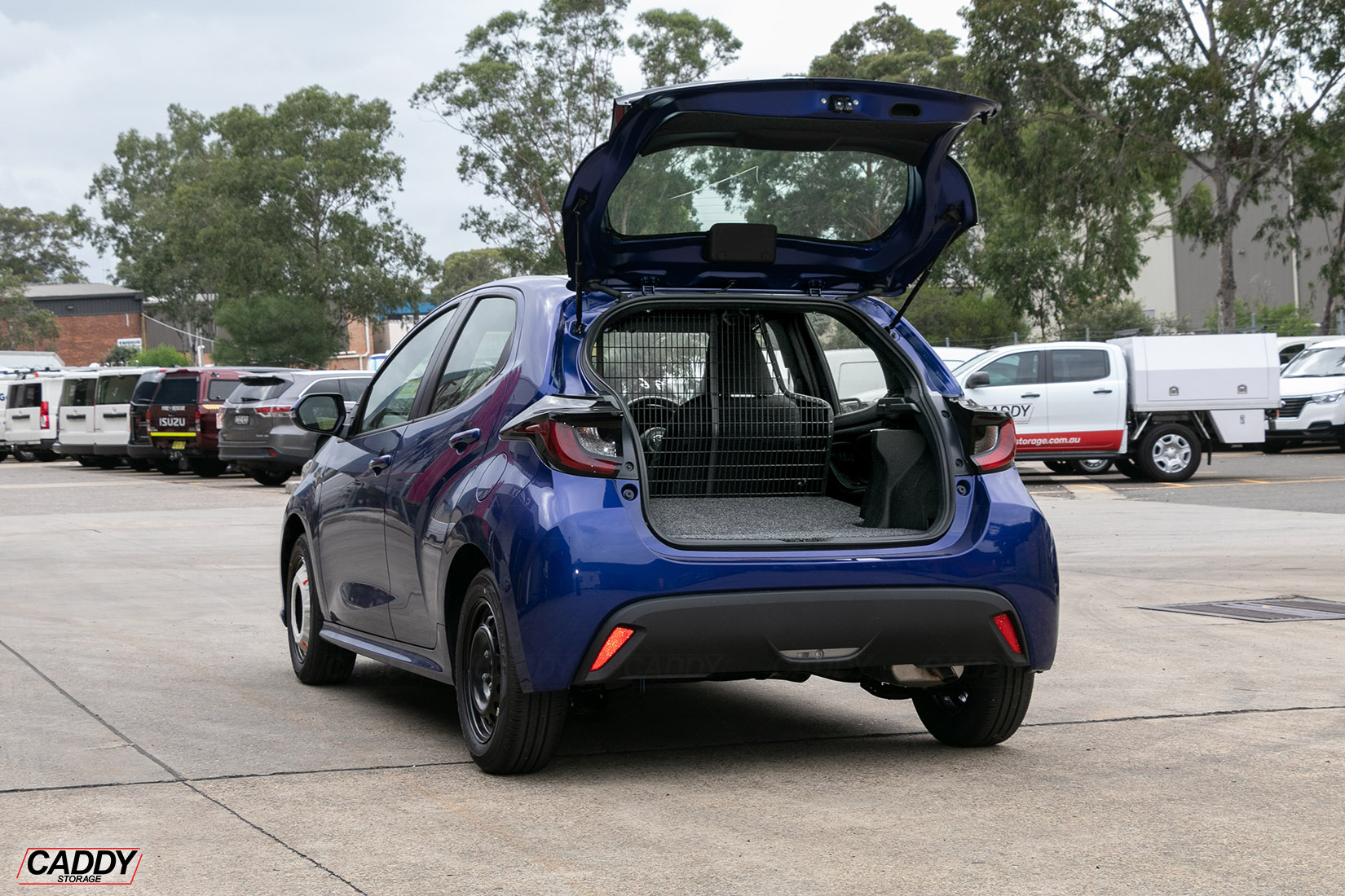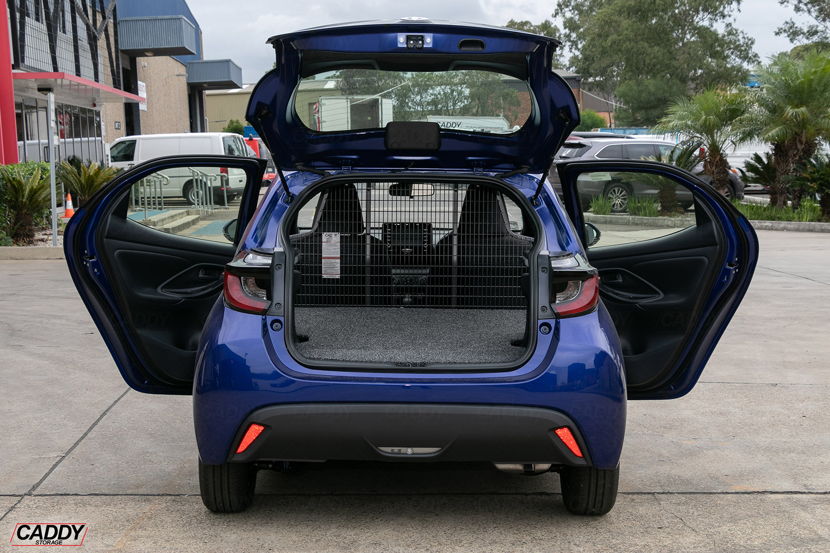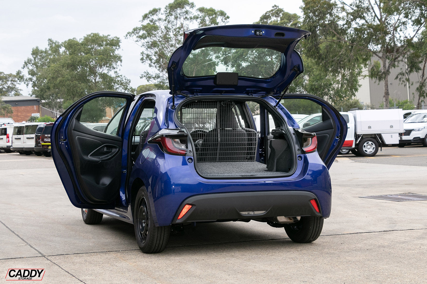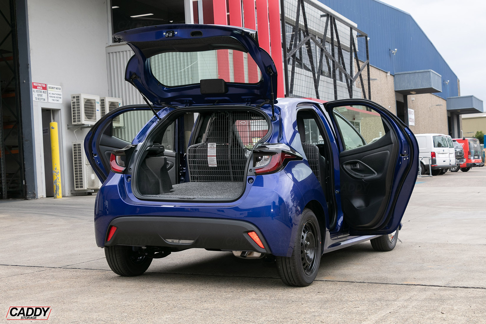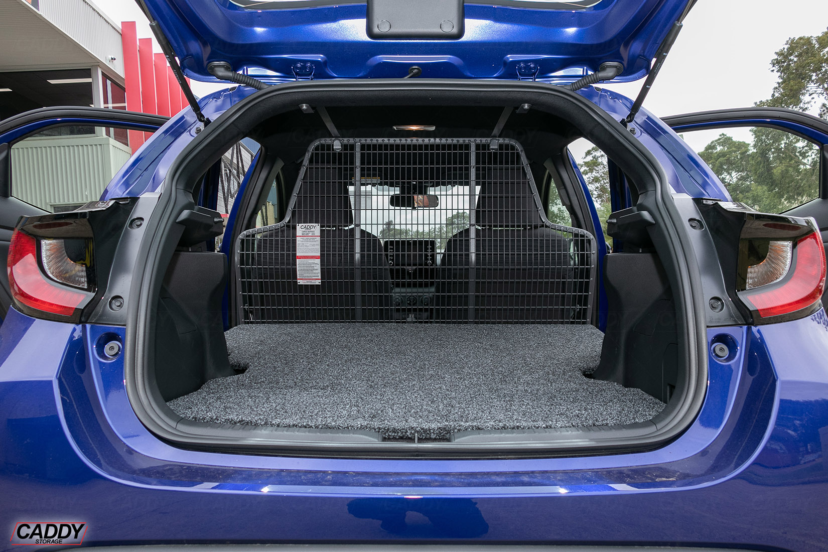 To Suit Toyota Yaris (01/2021+) 5 Door Model – Air Bag Compatible – Front Position Mesh Cargo Barrier Conversion Kit to suit vehicle with the 2nd row of seats folded down (Flooring is installed on top of the folded seats).