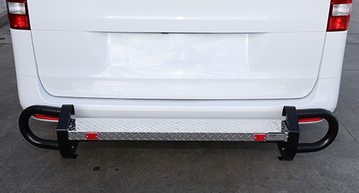Galvanised steps are constructed from laser cut steel which is bent via computer numerical controlled (CNC) machinery. The frame-like design provides multi-layered protection from the rear collisions and the blunt serrated tread step allows for additional grip when accessing the roof of your vehicle. The final welder product is then chemical treated and hot galvanised dipped to be resistant to the harsh Australian weather.