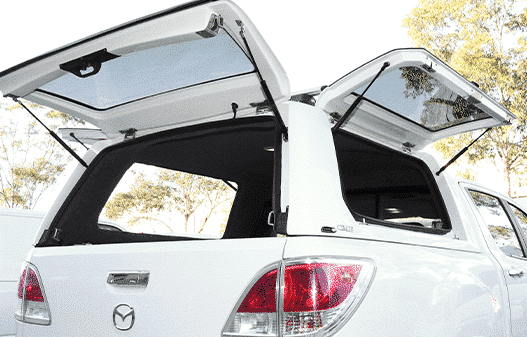 Lifestyle Ute Canopies are perfect for everyday use – the roof height of the canopy sits flush with the height of the cabin, giving your vehicle a sporty look. All Lifestyle canopies have an internal vinyl roof lining and rear spoilers. All lifestyle type canopies feature the following: